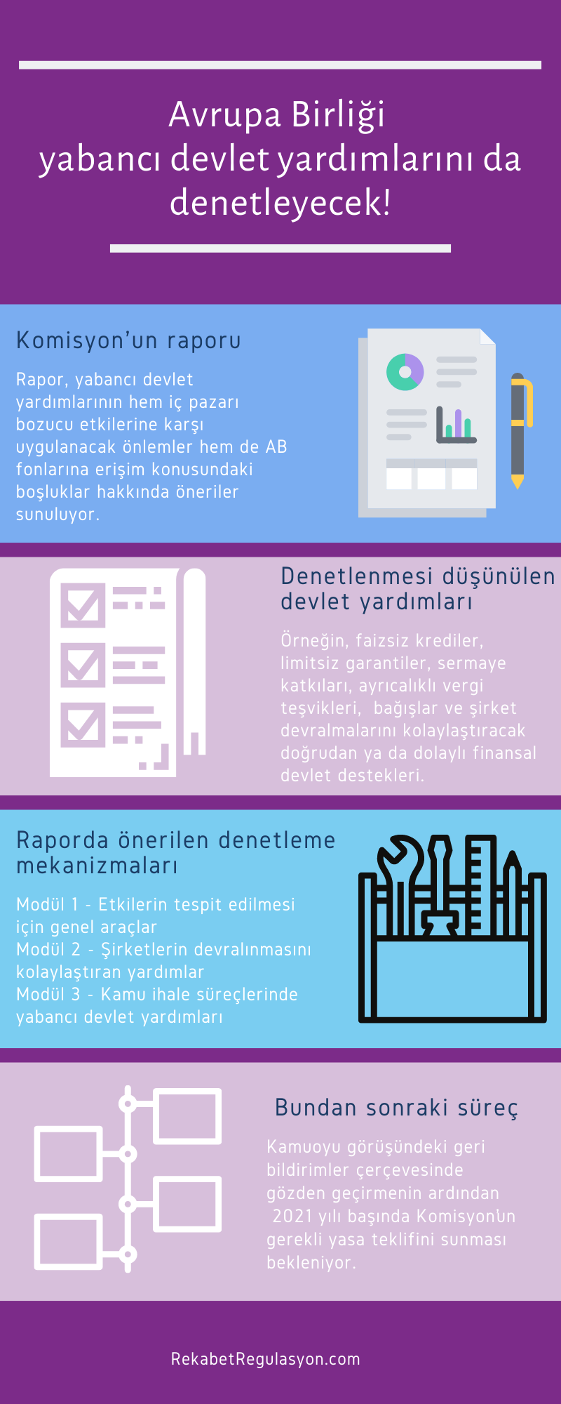 Avrupa Birliği (AB) kendi içinde devlet yardımlarının sıkı tedbirler ile denetlendiği uluslar üstü bir birlik. Zaman zaman bu konuda hararetli tartışmalar yaşansa da AB pazarındaki rekabetin gelişiminde bu kuralların büyük rol oynadığı aşikâr. Fakat şimdi, yabancı devlet yardımlarının da denetlendiği bir düzene geçiliyor. Bu durum, başta Çinli şirketler olmak üzere devlet yardımı alan diğer ülke şirketlerinin AB pazarlarındaki faaliyetlerini zorlaştıracağa benziyor.