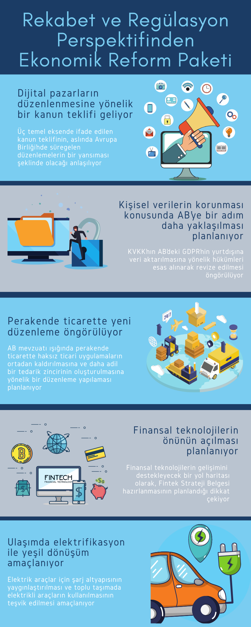 Ekonomik Reform Paketi, geçtiğimiz Cuma günü Cumhurbaşkanı Erdoğan tarafından açıklandı. Haftasonu boyunca da paketi özetleyen, öven ve eleştiren birçok yazı çıktı. Bizler de bu blogda ele alınan konular çerçevesinde, pakette yer alan rekabet ve regülasyon konularına dair bir değerlendirme yapmayı istedik.